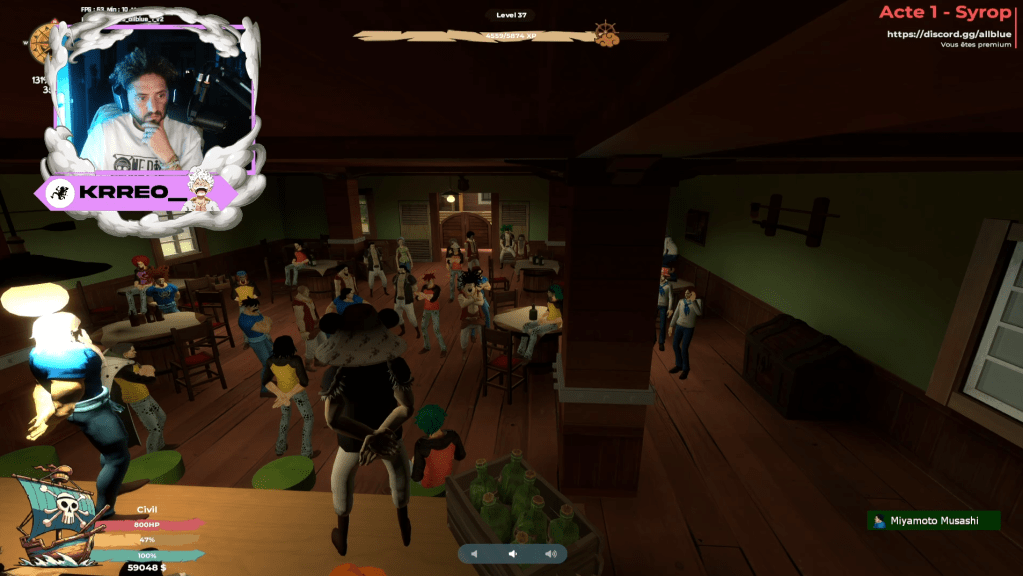 Myamoto est venu à Fuchsia avec une quarantaine de pirates et a fait un discours enflammé. Il a rassemblé de nombreux pirates pour partir à la chasse de l’équipage du Cornu. Bien que beaucoup aient mordu à l’hameçon, nous, les Ombres Célestes, avons choisi de rester fidèles à notre philosophie d’agir dans l’ombre et de mener des coups discrets, sans confrontation directe. Nous les avons donc laissés partir sans les suivre.