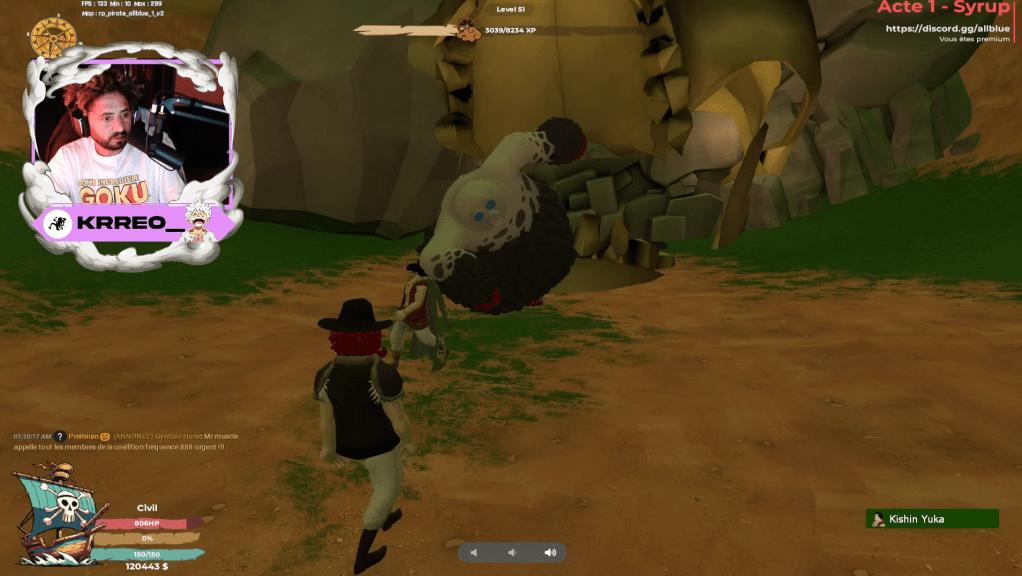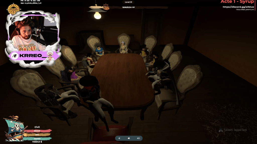 Riptine, le capitaine, a réuni ses hommes après avoir entendu parler d’un archéologue nommé Koco. Nous nous sommes répartis en plusieurs équipes de deux personnes pour fouiller toutes les îles de All Blue.