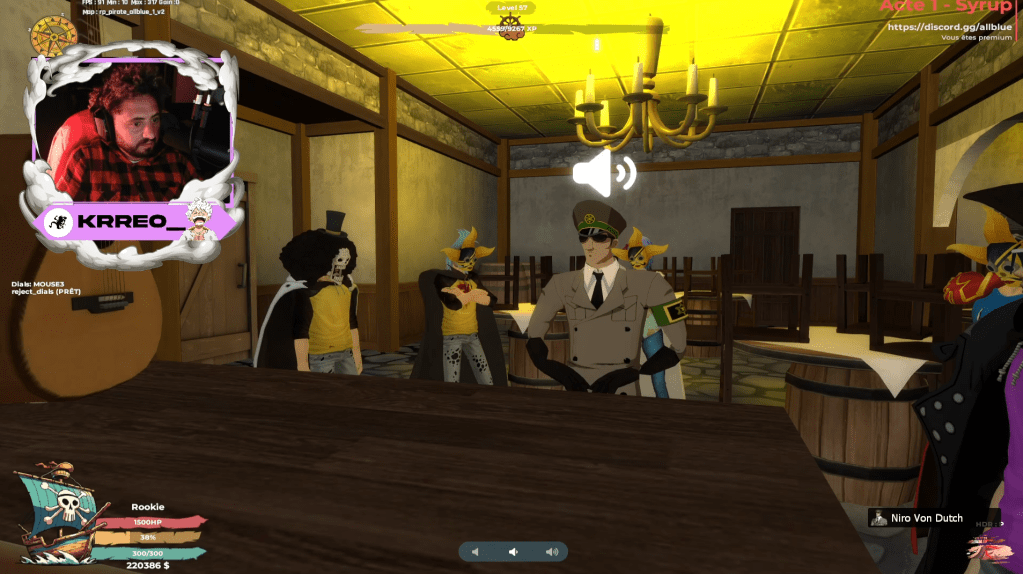 Nous nous sommes réunis avec les Ombres Célestes pour discuter d’un plan imaginé par Kuro, un membre de notre équipage. Son plan est de destituer Niro Van Dutch pour mettre Ali le vieux à sa place. Nous avons un passif avec Ali et cela pourrait nous arranger, surtout que Niro n’a rien fait de son mandat en tant que maire.
